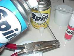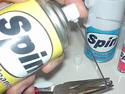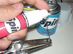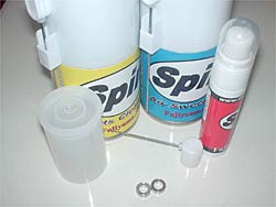 スピンをしっかりベアリングの隙間に当てて、一滴垂らして、ベアリングを回しながら乾燥させます。これでベアリングがまったく別物のように良く回るようになります。