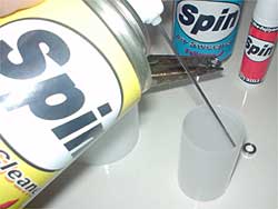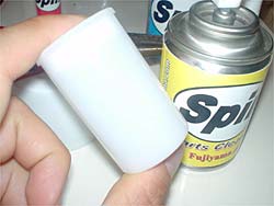 カメラのフィルムケースにパーツクリーナーの溶液を出します。5mm程度溜まるくらいで良いようです。