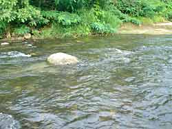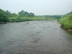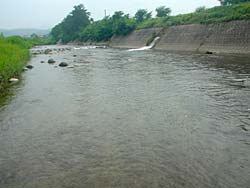 今年はどの河川もアユは芳しくないようでここもアユの気配が例年に比べ少ないそうです。しかし、そうはいってられません。何としてでも釣らなければ鮎釣りのおもしろさを体験できずに、しばらくやらなくなっていまいそうです。