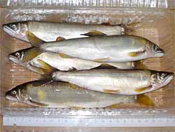 結果は、やっぱり一匹でしたが初めて友釣りでアユを掛けることができました。またSATO氏よりアユを頂いたのでおみやげが増えました。最大は21cm。