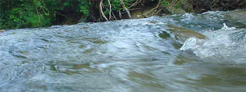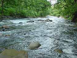 さて、場所をもう少し上流部に移して渓相の良いところに入りました。ここは人気ポイントなのでこの増水で魚が動いたことを期待したのですがすでに釣り人は午前中に入っていることでしょう。