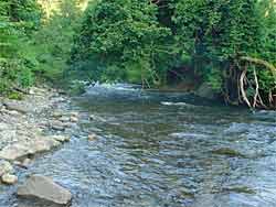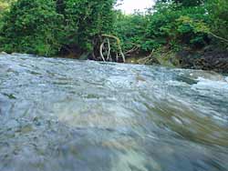 何とか一段落なので午後2時過ぎにご近所川へ。梅雨末期の大雨で増水しチョコレート色か笹濁りかなと思って出かけるとまたまたクリアーな水が流れていました。