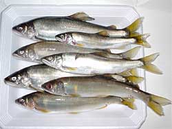 マイナス1匹となってしまいました。左は、みなさんからのありがたい頂き物の鮎です。さあまだまだ修行は続きますね。