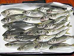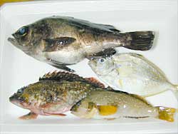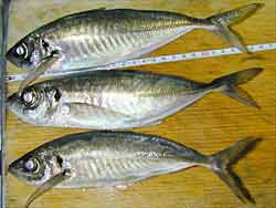 竿は、投げるのでしたら4-5mくらいの投げ竿でオモリは2-15号くらい、サビキが主流でコマセ籠を付けています。ラインは2-3号、針は7-8号の6本くらいで白スキン、ピンク、オーロラといろいろあった方がいいようです。 足下に落として釣るときは、磯竿5-6mくらいでそのままミャク釣りできます。