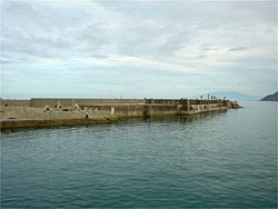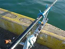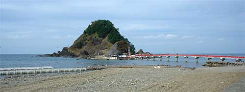 またまた北へ向かいます。湯野浜の白山島(一番上の写真)をカメラに納め、このままでは酒田まで行ってしまうと気持ちを切り替え、南下。一気に岩船港まで戻りました。左写真は、車止め用の竿受け。