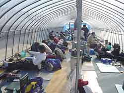 しかし、今日は(も)釣れない、ようやくワカサギがいるかなと思うときに、軽いオモリが災いしてか、お祭り合戦になってしまい、釣りどころでない状態が続き、ツ抜けせずに午前の部終了。
