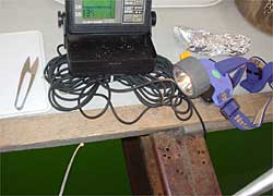 フラッシャーは、流れがあって仕掛けが真下に落ちないので今回は魚探です。しかし、ワカサギが・・いない。