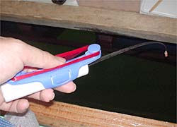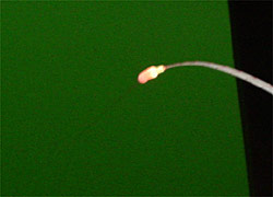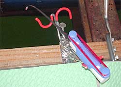ヘッドランプを利用して、穂先の蛍光チューブにライトを当て、早朝と日中の光量不足を補いました。穂先はホスボンの手繰り用です。