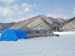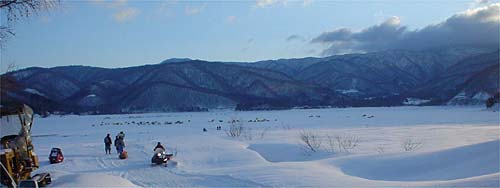 まだたくさんのテントが氷上を賑わしていますが、岸辺から春の気配が近づいてきました。もうすぐ氷も融けて水面が顔を出しそうですね。
