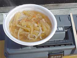 名物の千代子ソバがお昼に振る舞われ、ようやく緊張の糸が解けました。周りは、ずっと前からあまりのアタリのなさにお昼寝モードに近かったけど・・。