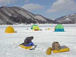 天気が良く、周りにはテントや露天の人がでていました。そろそろ最終戦の檜原湖ですが、氷は厚く3月いっぱいは楽しめそうです。