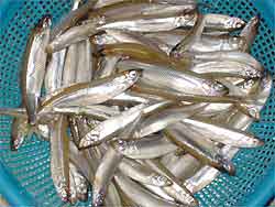 釣果は76匹(10-11cm)。水深11.2m(水温:表面2.6度、2mごと0.2度上昇、底・3.4度)。棚は、ベタ底から1.5mと上層はバラバラ。仕掛け細地袖2.5号・底バリ付き7本。オモリS-SS。餌、赤白サシ半切りと「紅雪」。