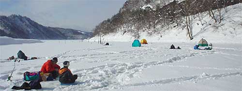2004.1.24の山形県・水窪ダムの氷上ワカサギ