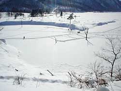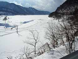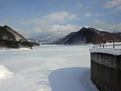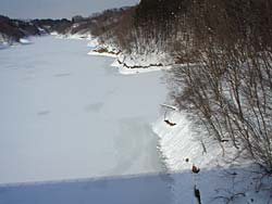 橋の下も薄いですが凍ったので橋の上からの釣りはできなくなってしまいました。全体に氷は薄そうですね。