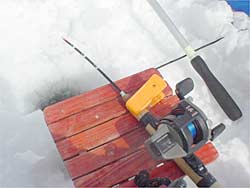 露天での釣りは、天気がいいときは楽しいけど、日が陰ると一気に修行。ガイドが凍るし、凍傷になりそうなので、取りあえずゴム手袋をかけました。また棚ハンター改(Spinスペシャル)のテストもしてみましたが、ストップウォッチを忘れ、正確なタイムが分かりませんでしたが格段に落ちが良くなりました。