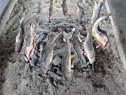 友人3人で釣っても最終的にはあまりお持ち帰りもできそうになく、ここは炭火焼きにして平らげてしまおうということに。 たまたま福島から釣行のお客さんと新潟からの親子での釣行といっしょに炭火焼きでいただきました。(絶品!)
