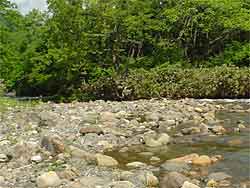 今日はご近所川を案内すると言うことで2部制です。7時に第一部終了で、このご近所川から別のご近所川へ移動です。ここはヤマメが主の流域でした。