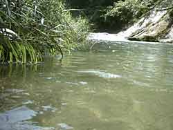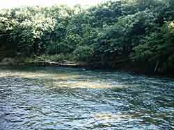 でも帰り足で35cmほどのヤマメらしき魚影発見。やっぱり隠れているのですね。悠々たるものでゆっくり姿を拝ませていただきました。