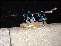 ここは防波堤の壁が高いので脚立なでの足場と竿置きがあると便利です。今回、竿置きを持参してみましたが若干修正しないと使い勝手が悪いですね。