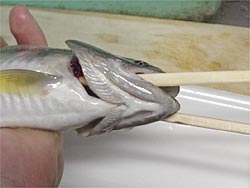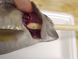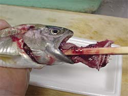 エラもワタもきれいに取れました。口から指を入れて残った血合いをきれいにします。