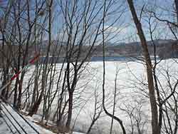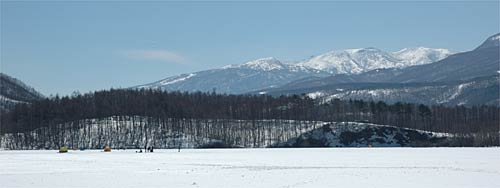 湖の北側は湖水が見えています。今年は全面結氷しなかったということでした、やっぱり暖冬なのでしょうね。