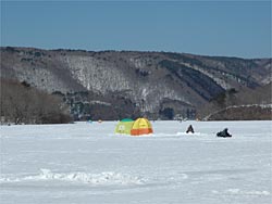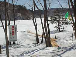 漁協さんで、岸に橋が渡してあり管理が行き届いていると感心しました。地元もこういう風にして貰えると有りがたいですね。どうやら今日までで氷上釣りは禁止にするようですが、氷はまだまだ厚いので勿体ないような気もします。