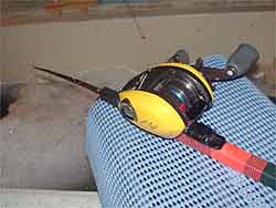 ワカサギは、いろいろなところにいるようでしたがやはり厚いところを見つけるのが大事で、棚は浮き気味で底から1.5-2mが厚いですね。しかし、水深4m層や様々な層にばらけているようです。食っても走らないので、地道に誘ってアタリを取る釣り方が有効ですね。また今回の夜間は、紅サシの生きたままの通し刺しが有効でした。