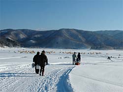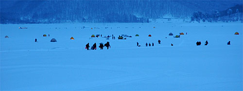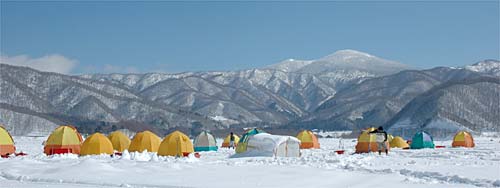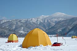 今日も本村に移動して、米沢の上州屋さんよりお借りした8人用のテントで、テント村に切り込みます。しかし、・・・・やっぱり、今日も渋く、魚影は昨日よりあるのでそっと誘って一匹ずつ拾います。