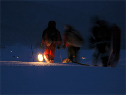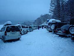 今回、やまぐっちさんの8人用のレンタルハウスをお借りしました。順調に走ってこれたので朝5時半に駐車場に入って、送迎時間まで暇なので写真を撮っていました。ランタンを持った人の行列が、思い思いの方向へ散っていく様は、山師の心境でしょうね。