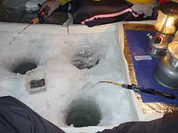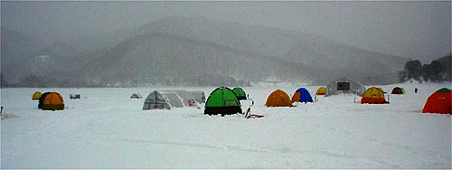 朝に、浜ちゃんと合流してワカサギ談義をしながら釣りますが、何とも釣れない状態。