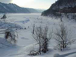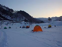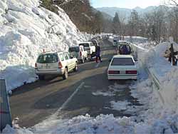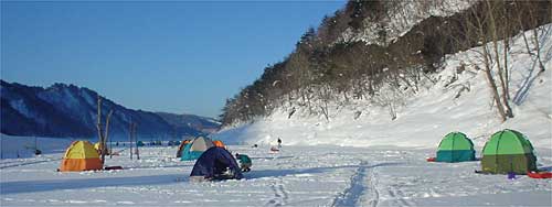 さて、6時過ぎに水窪に着くと、駐車スペースは、降り口の30mほど手前までしっかりと除雪されています。(県南漁協さん、ありがとうございます)