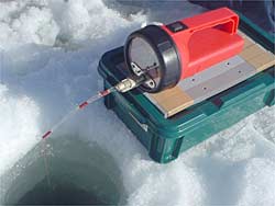 次の場所は、時速40匹ペースで釣れ、オカズ分が釣れたので7mラインに来ているhamachanと落ち合い、新型電動リールを見せて貰いながら、ワカサギ談義です。ここは、いい感じの渋り方で、のんびりできそうです。