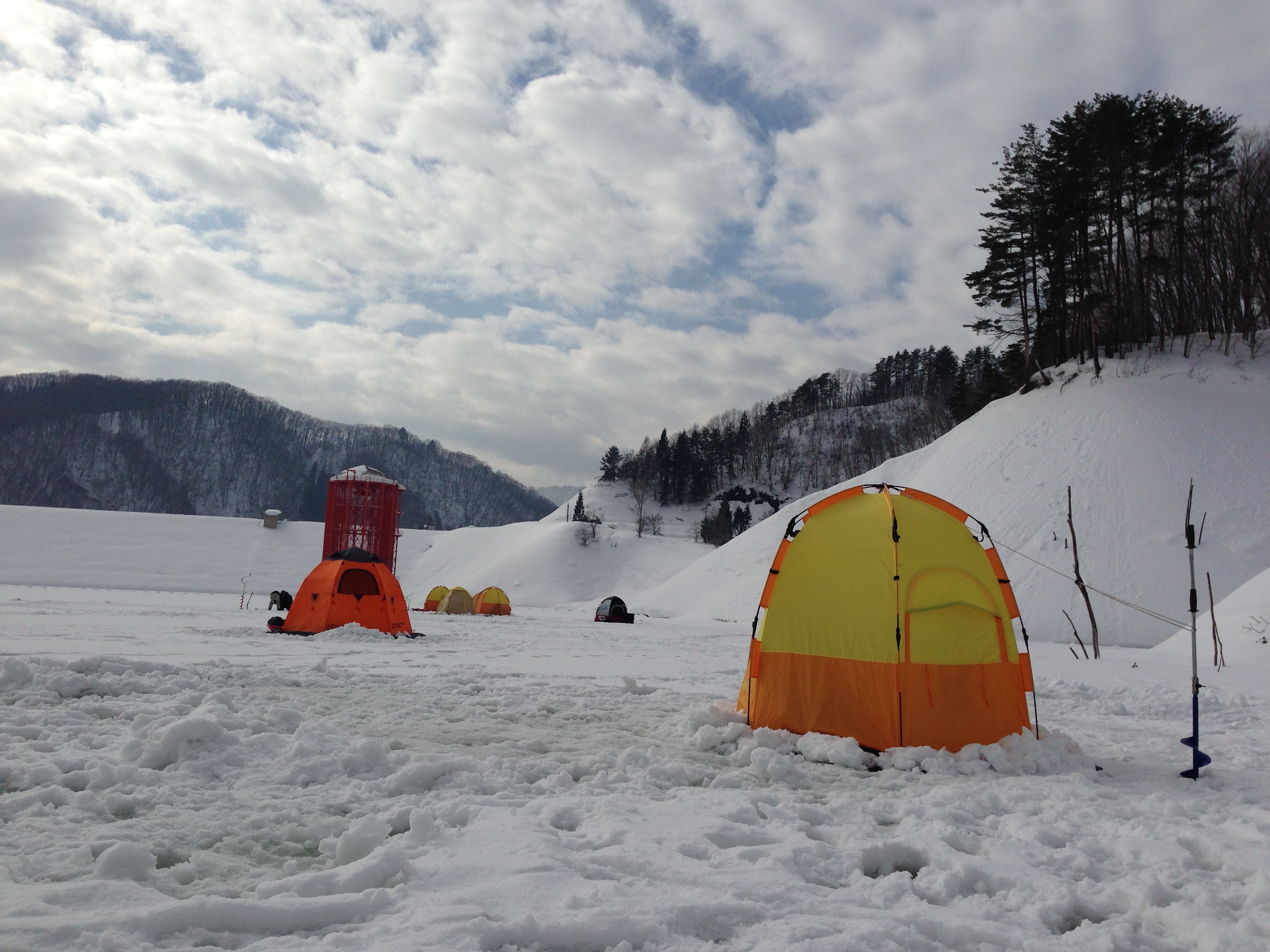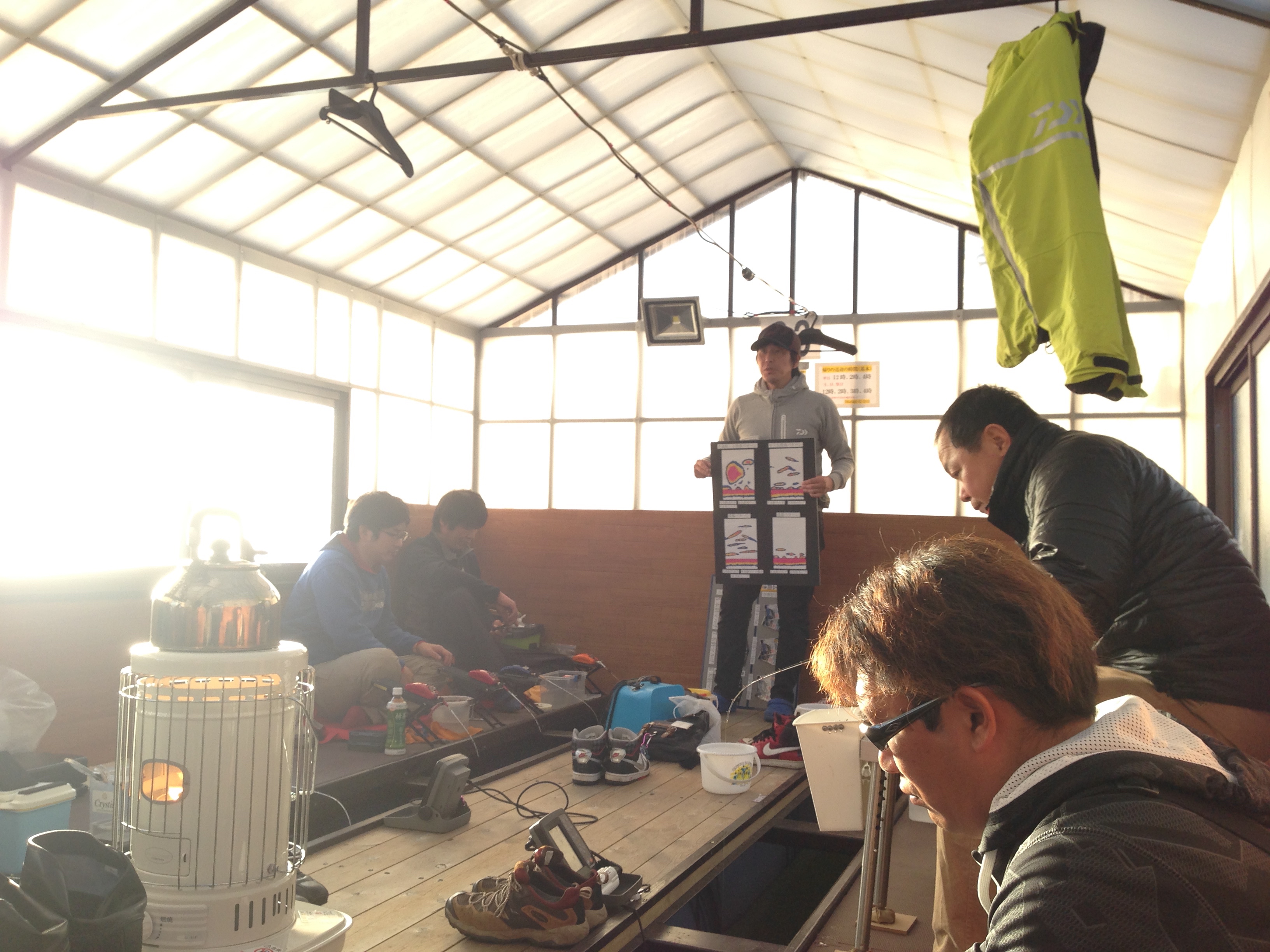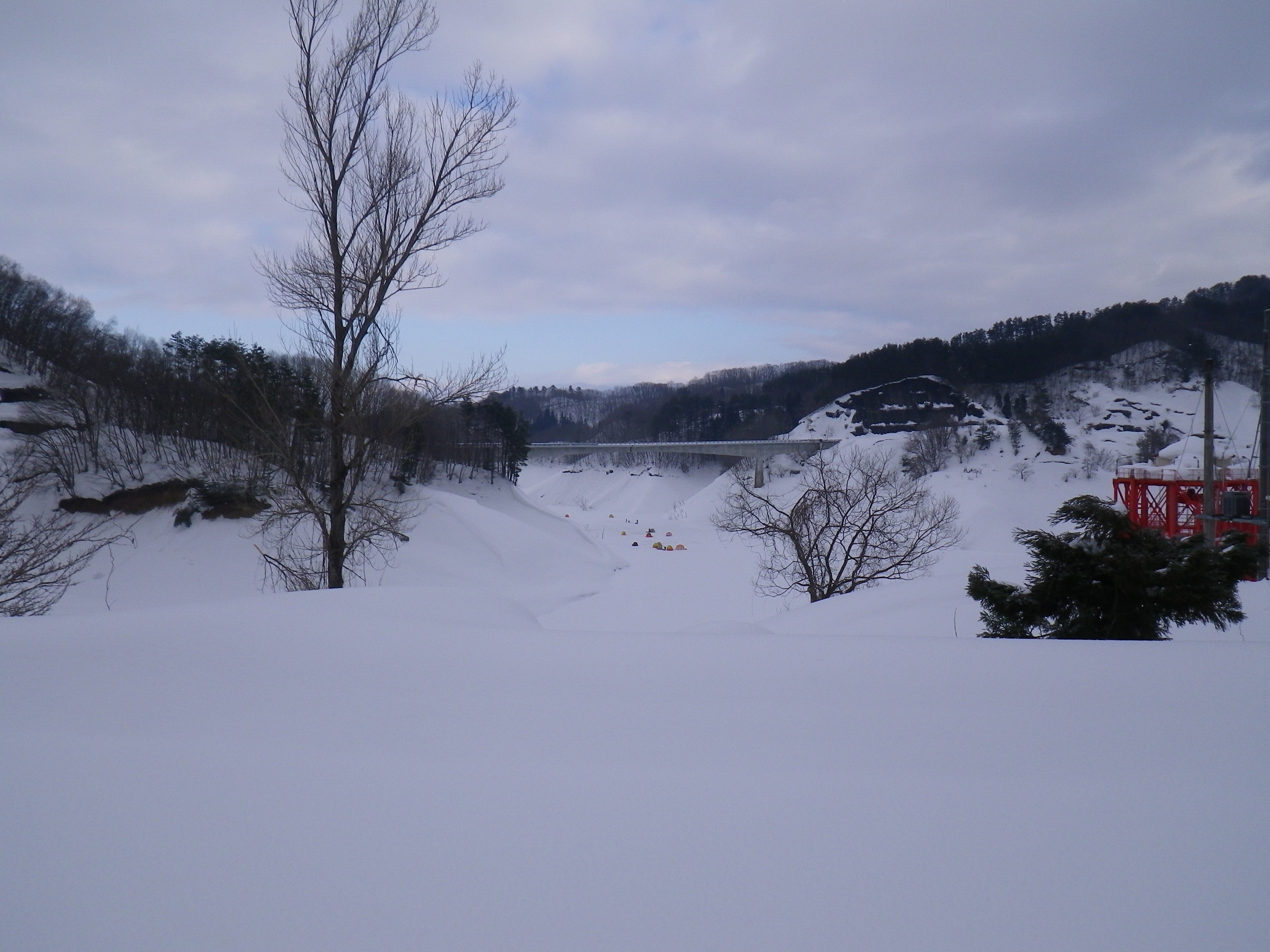 相変わらずヘトヘトになって、崖もソリを下ろして、釣り場に入ります。