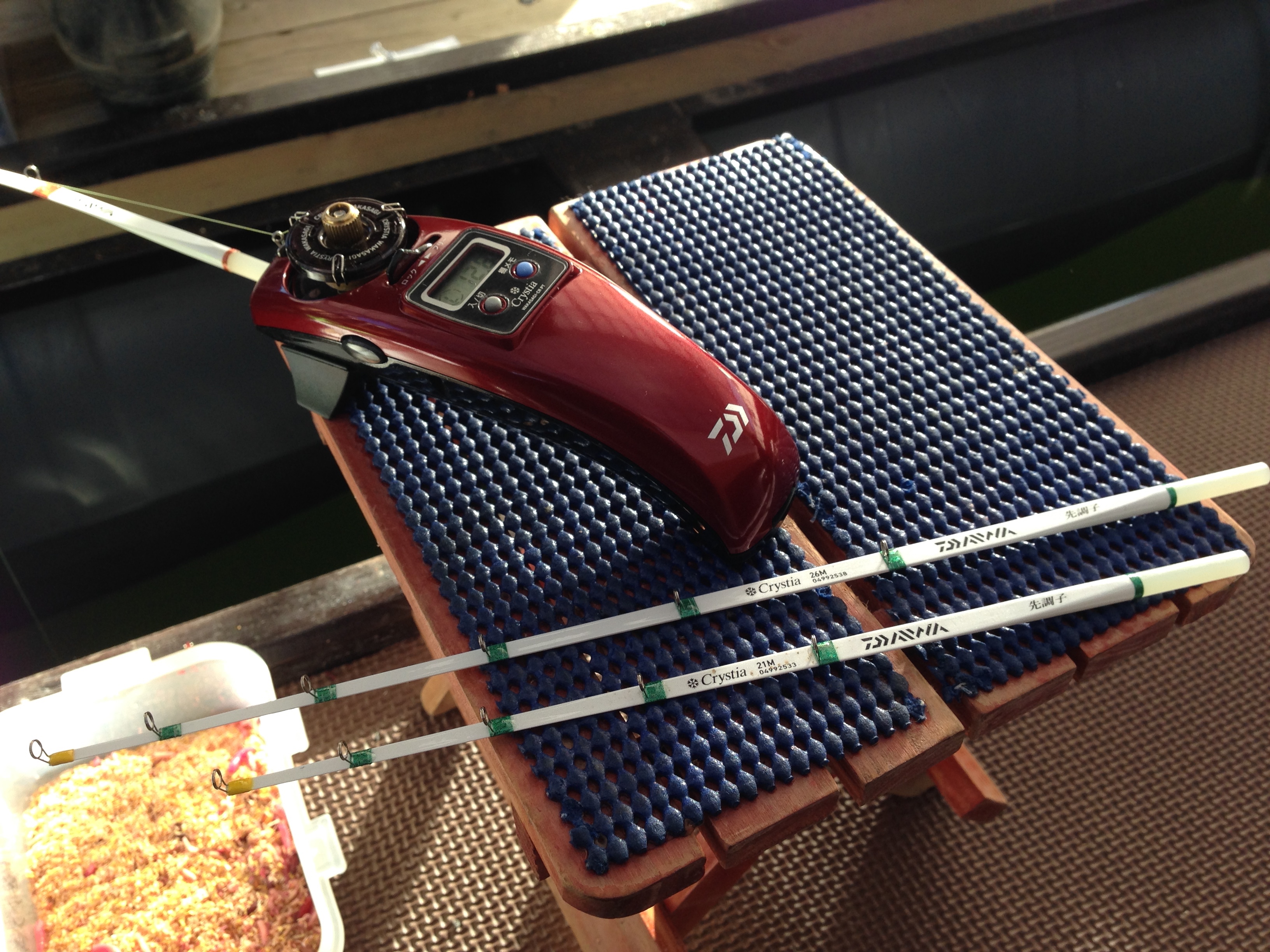 今日は、魚探のバッテリーを小型化しようと変えたのですが、