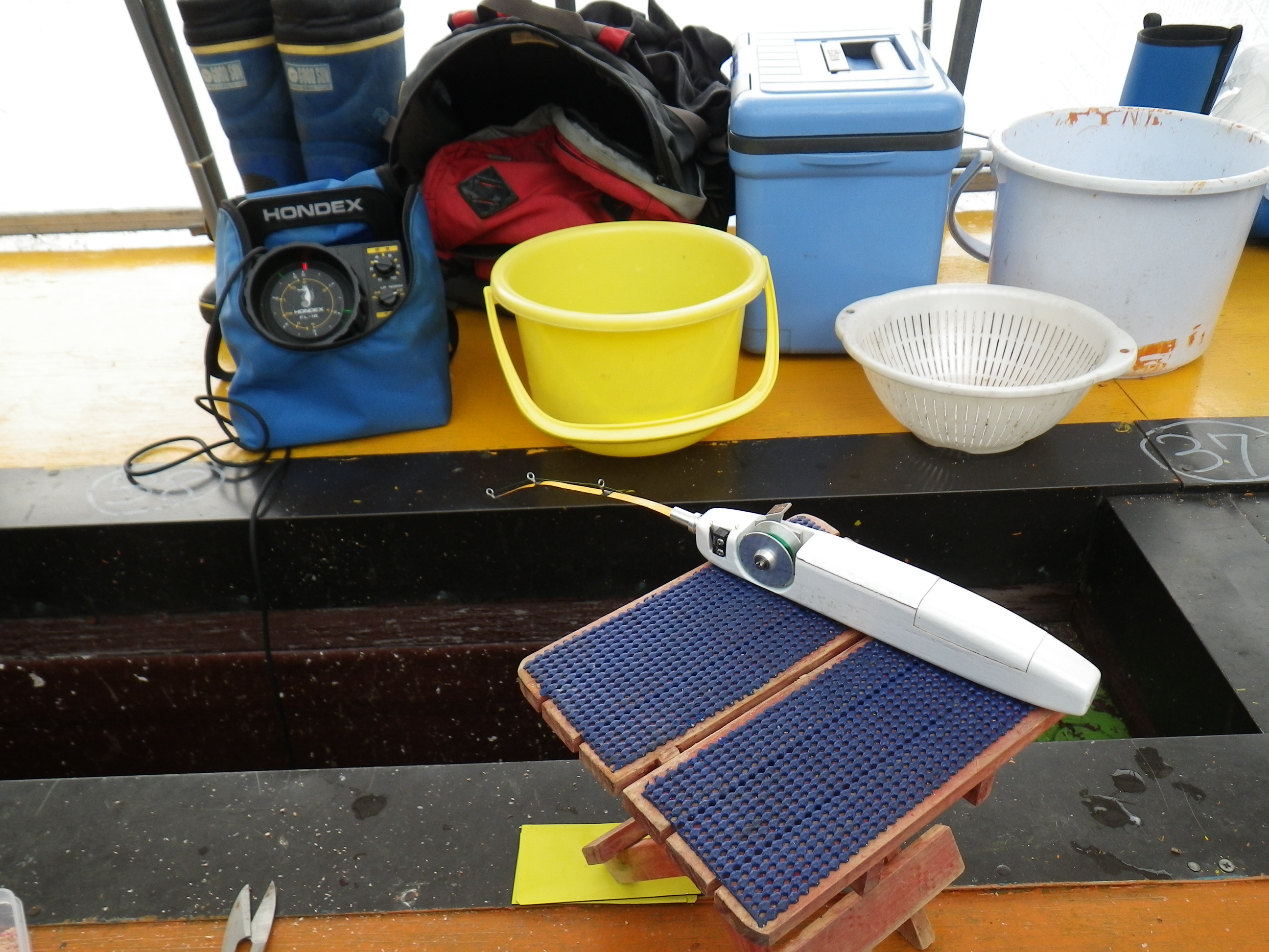 今日は、今期始めてのワカサギ釣りですので、手繰っていますが、なかなかアタリに反応できません。